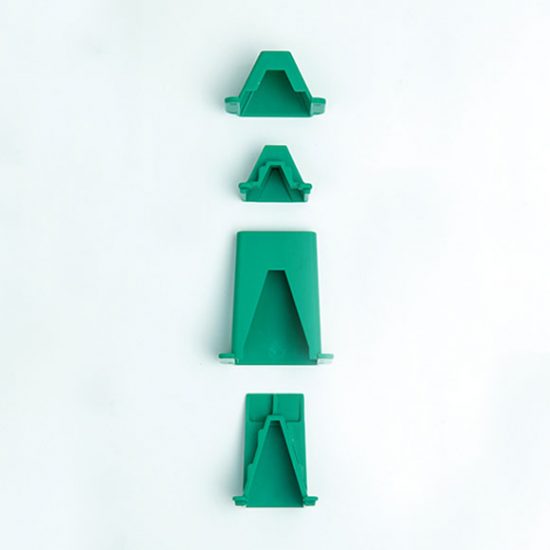 Der Stoff wird einfach durch die beiden Former gezogen und direkt mit der Nähmaschine abgesteppt, wodurch das lästige Stecken und Verrutschen entfällt.
